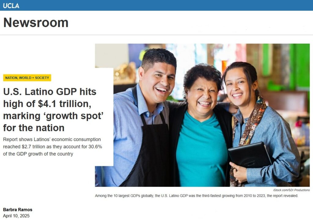 The 2025 Official LDC U.S. Latino GDP Report™ confirms that the U.S. Latino GDP has reached a historic $4 trillion, ranking as the 5th largest economy in the world if considered independently. This groundbreaking analysis, produced by the Latino Donor Collaborative (LDC) in collaboration with the W. P. Carey School of Business at Arizona State University and sponsored by Wells Fargo, showcases the unmatched speed, scale, and resilience of Latino economic growth.
